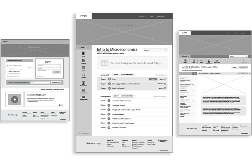 The new LaunchPad is easily customizable for the thousands of collegiate textbooks Macmillan publishes a year. It showcases the book art, an essential goal of the publishers, while allowing students to access their homework assignments on any device. For the instructors, a color-coded instructor console makes setting a course up and other related activities simpler. Also, we were able to reduce tech support calls by designing an intuitive navigation structure and simplifying the login process, saving Macmillan precious resources.